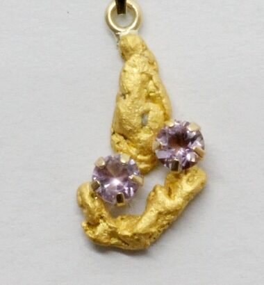 Tilaa tästä käsityönä valmistettu Lemmenjoen Lapinkulta hippuriipus. Yksilöllinen taideteos, toista aivan samanlaista ei ole. Kaksi ametistia.