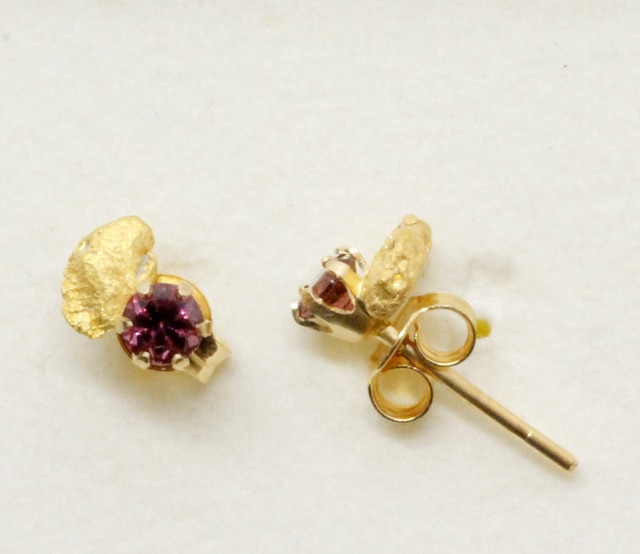 Granaatti korvanapit-kultahippu 5mm Lemmenjokikoru. Kultahippu korvakorut (pari) aito Lemmenjoki kultahippu ja Lemmenjoki Granaatti.