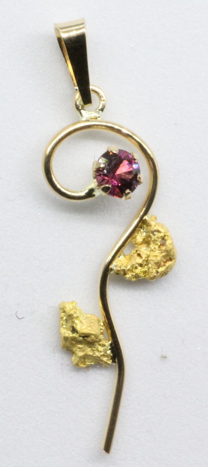 Granaattiriipus -kultahippu ”Kukka” Lemmenjokikoru Alhonen. Riipus aidoista Lemmenjoen kultahipuista sekä Lemmenjoen Granaatti.