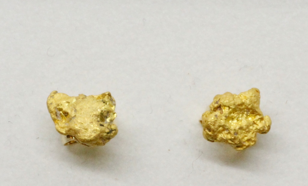 Osta tästä kultaiset korvanapit (2 kpl), Yksilöllisesti valmistettu aito Lapin kultakoru Lemmenjoen kullasta.