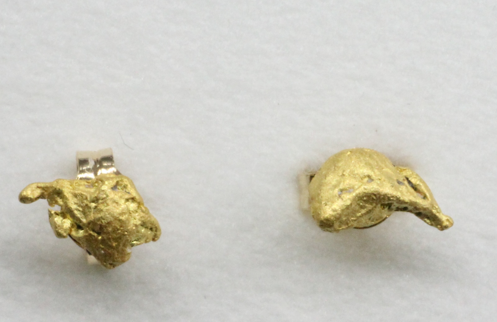 Osta tästä kultaiset korvanapit (2 kpl), Yksilöllisesti valmistettu aito Lapin kultakoru Lemmenjoen kullasta.