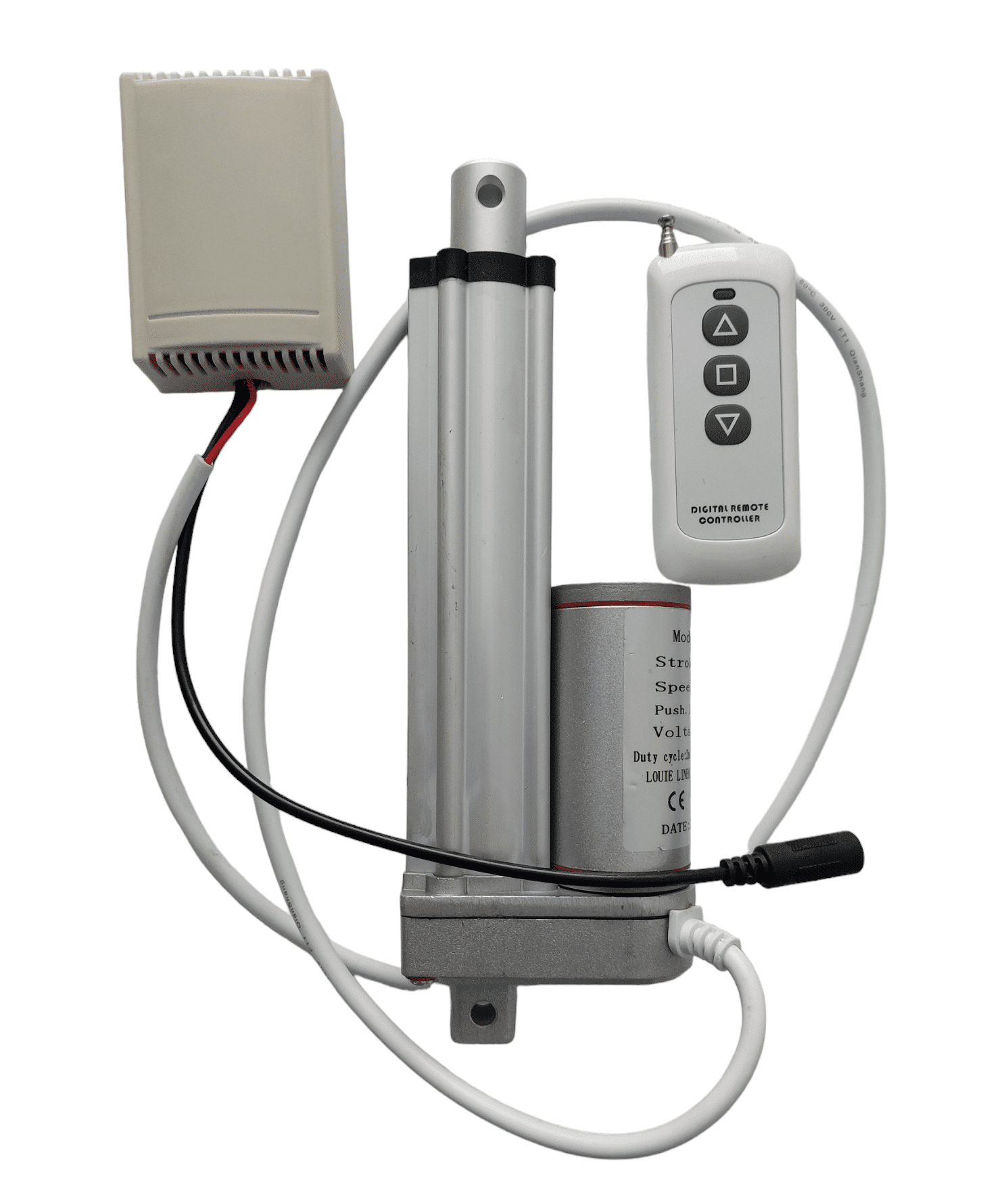 Lineaarimoottori 12V 100mm 1300N Kauko-ohjaus moneen käyttöön, jossa tarvitaan työntöä tai/ja vetoa. Vesitiivis Lineaarimoottori 12V 100mm 1300N Kauko-ohjaus.