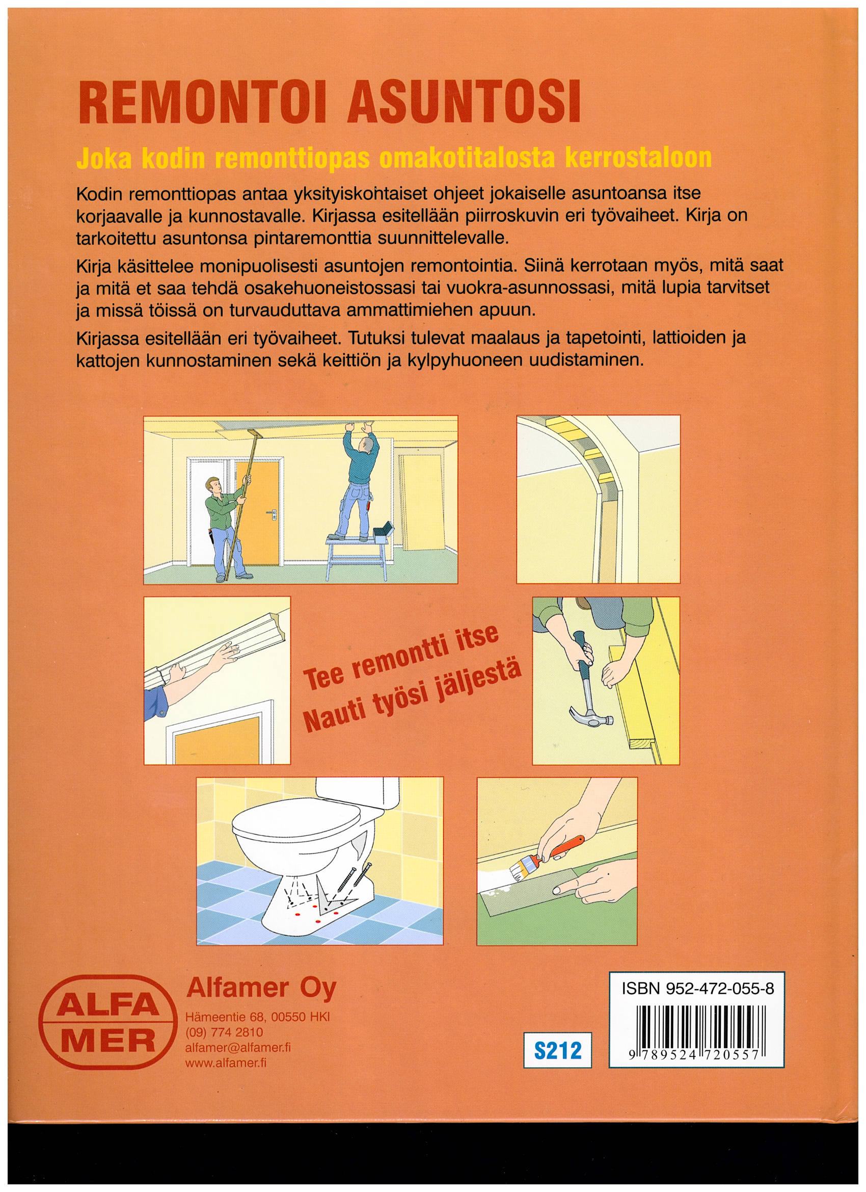Remontoi asuntosi; Alfamer -kirja  ALFAMER on Suomen johtava auto- ja moottorikirjallisuuden kustantaja. Alfamer on julkaissut yli 40 vuoden aikana satoja kirjoja: korjausoppaita, tekniikka- ja historiakirjoja aiheina autot, traktorit, työkoneet, rakentaminen,   ym.